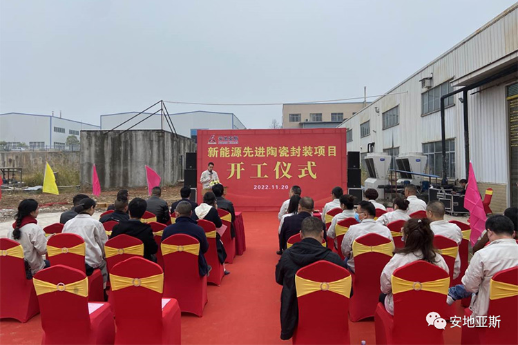 2022年11月20日早上,萬里無云,溫暖的陽光灑滿大地,公司新能源先進陶瓷封裝項目工地上彩旗飄飄、火紅的氣球隨風飄揚。主席臺上“新能源先進陶瓷封裝項目開工儀式”幾個大字分外醒目,今天是安地人高興的日子,我們將在這里舉行新廠房建設開工儀式。